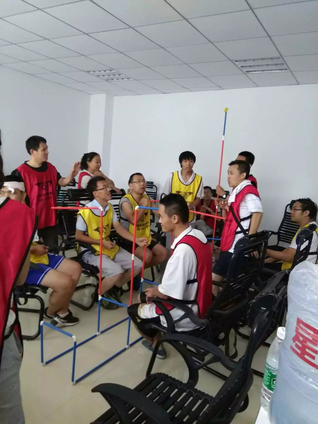 此次拓展共進(jìn)行了“急速60秒”、“盲人指路”、“呼吸機(jī)”、“漢諾塔”、“盜夢(mèng)空間”5個(gè)項(xiàng)目的訓(xùn)練,從最開始的推選隊(duì)長(zhǎng)、挑選隊(duì)名、唱隊(duì)歌,到后來一個(gè)個(gè)小游戲的訓(xùn)練完成,員工以游戲?yàn)檩d體,以運(yùn)動(dòng)為依托,通過趣味性的游戲、啟發(fā)式的運(yùn)動(dòng),增強(qiáng)了彼此間的了解,感悟到了人與人之間的溝通和信任,體會(huì)到了團(tuán)隊(duì)的力量。每個(gè)項(xiàng)目都帶給員工一些生活工作中的啟示: